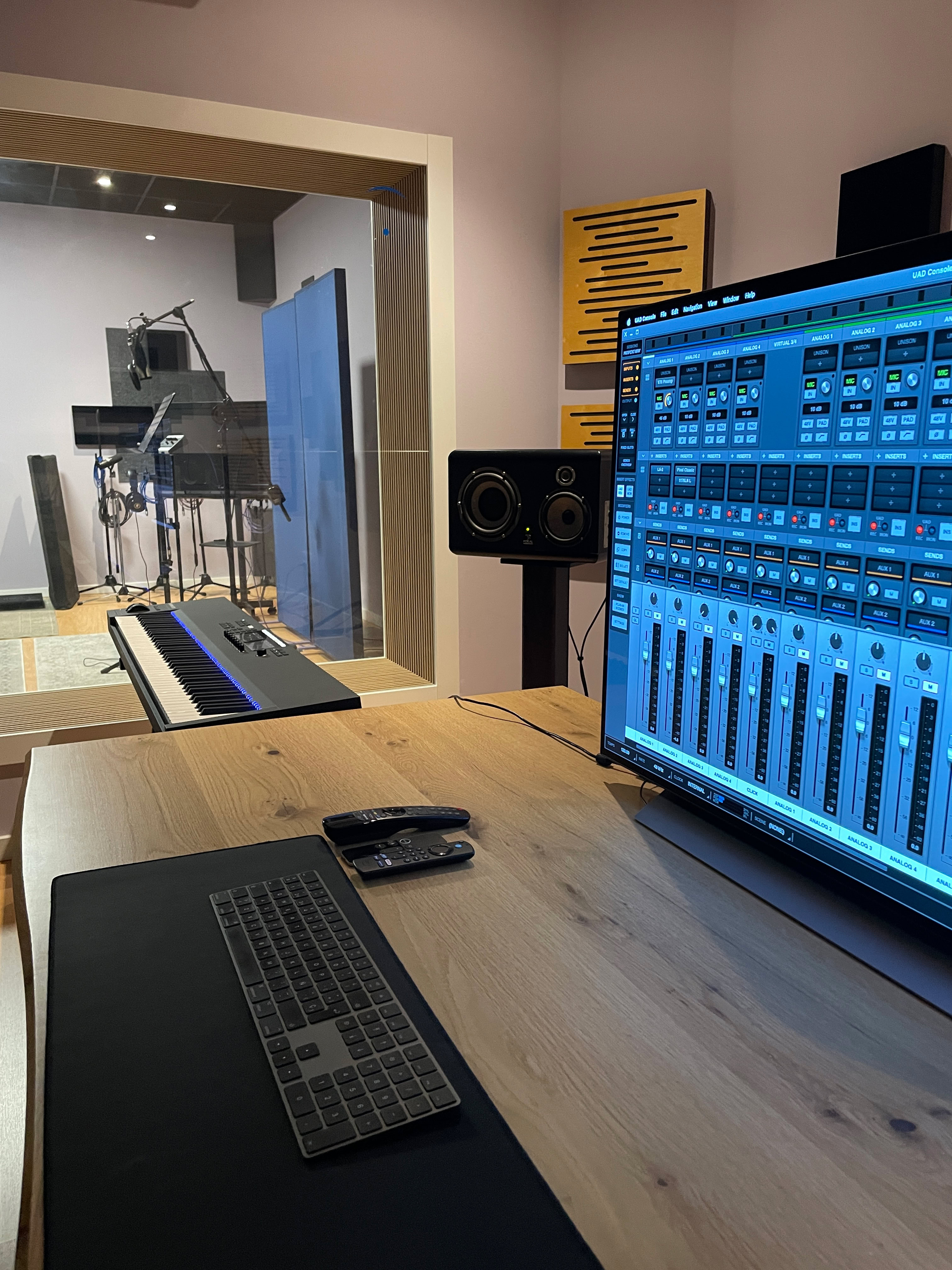 La Sala C es nuestra segunda sala de control, diseñada con una acústica neutra que garantiza la mayor precisión en la toma de decisiones durante la grabación, mezcla o postproducción. Ofrece una amplia visión directa a nuestra Sala B, lo que facilita la comunicación y coordinación en proyectos complejos.