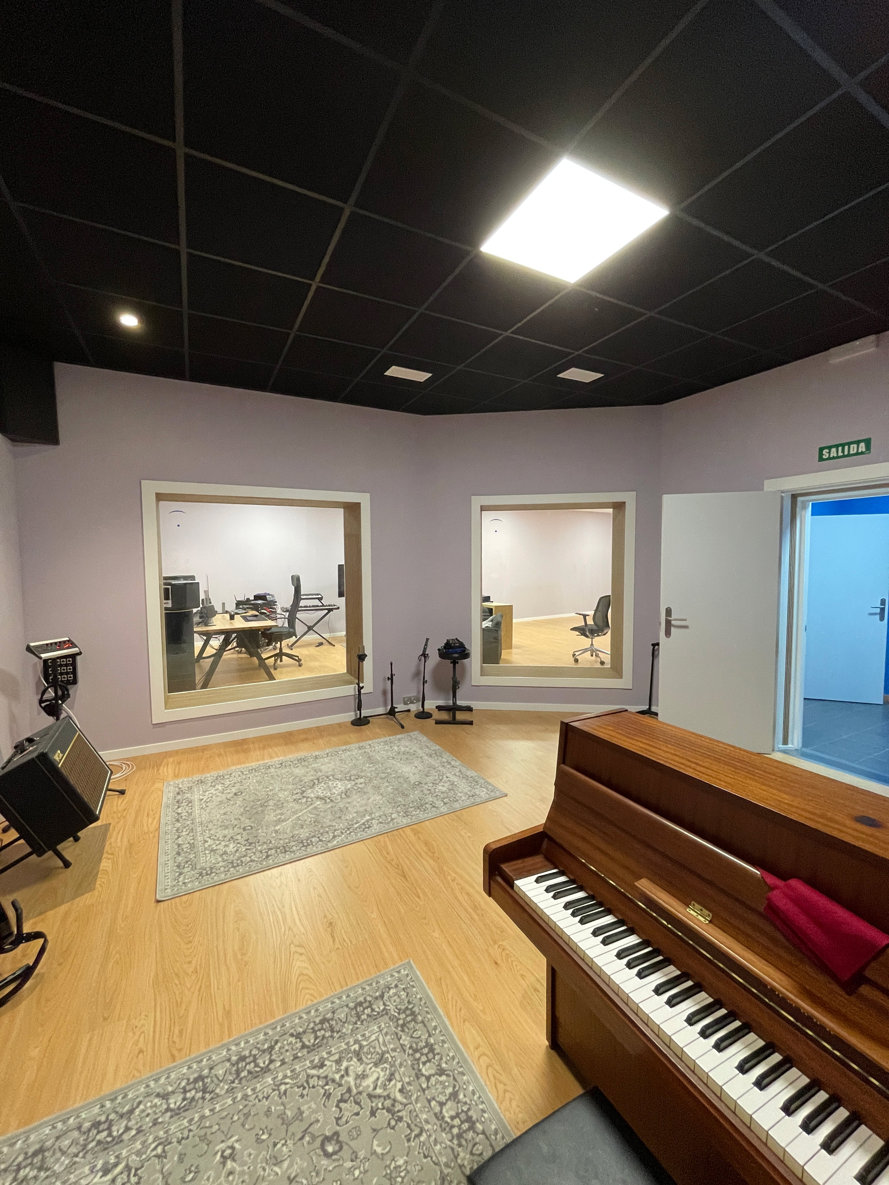 Nuestra Sala A cuenta con 25 m² diseñados para ofrecer una acústica cálida y equilibrada. Este espacio ha sido cuidadosamente insonorizado y acondicionado para garantizar resultados sonoros excepcionales, ya sea para grabaciones vocales, instrumentales o sesiones más complejas. Dispone de una doble comunicación visual directa con la zona de control principal de nuestra Sala M, facilitando una conexión perfecta entre el artista y el técnico.
