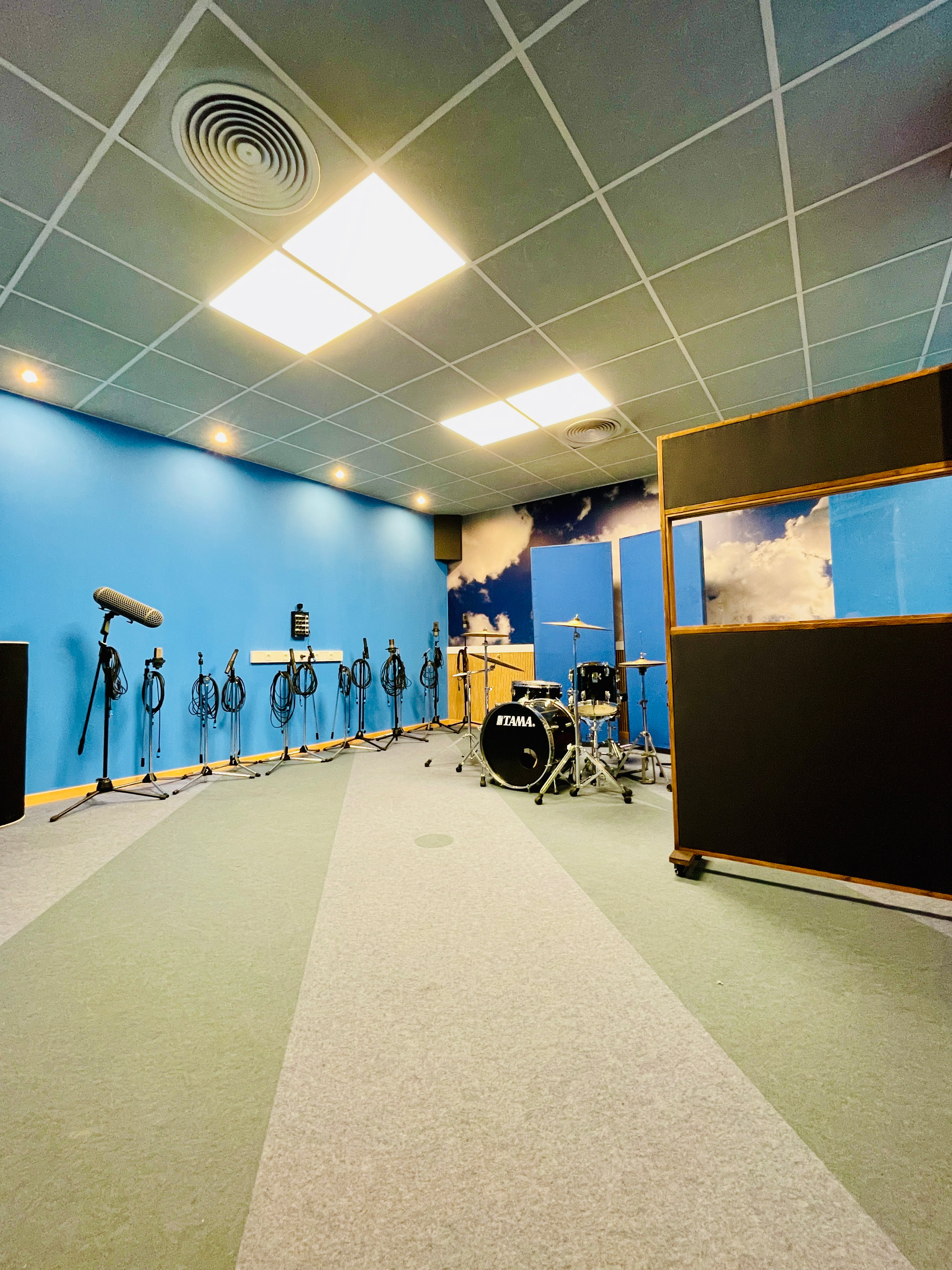 Nuestra Sala B, con más de 30 m², ha sido diseñada con una acústica viva y dinámica ideal para capturar la energía y el carácter de baterías, ensembles y formaciones musicales numerosas. Este espacio combina amplitud y calidad sonora, siendo perfecto para proyectos que requieren un sonido auténtico y natural. La sala está equipada con mamparas acústicas móviles, lo que permite crear espacios sonoros independientes. Esto resulta especialmente útil en grabaciones con varios músicos simultáneamente, asegurando la máxima calidad y control en cada toma.
